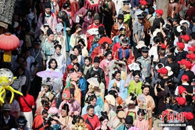 中新网南充4月18日电(记者张浪)18日,以“袍行阆苑·梦回千年”为主题的2026阆中汉服纪作为在四川省南充市阆中古城献技,当日,甲胄手搓直播、主题汉服巡游、游园互动、汉服之夜等重磅作为挨次开展,千年古城化身千里浸式国风体验舞台,来自寰宇各地的汉服同袍与上万名搭客王人聚于此,共赴一场穿越千年的文化之约,感受春日里的国风魔力。