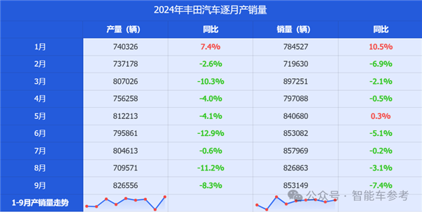 从产销快报来看,丰田的产量照旧连络8个月同比下滑,销量也连络4个月同比下降。