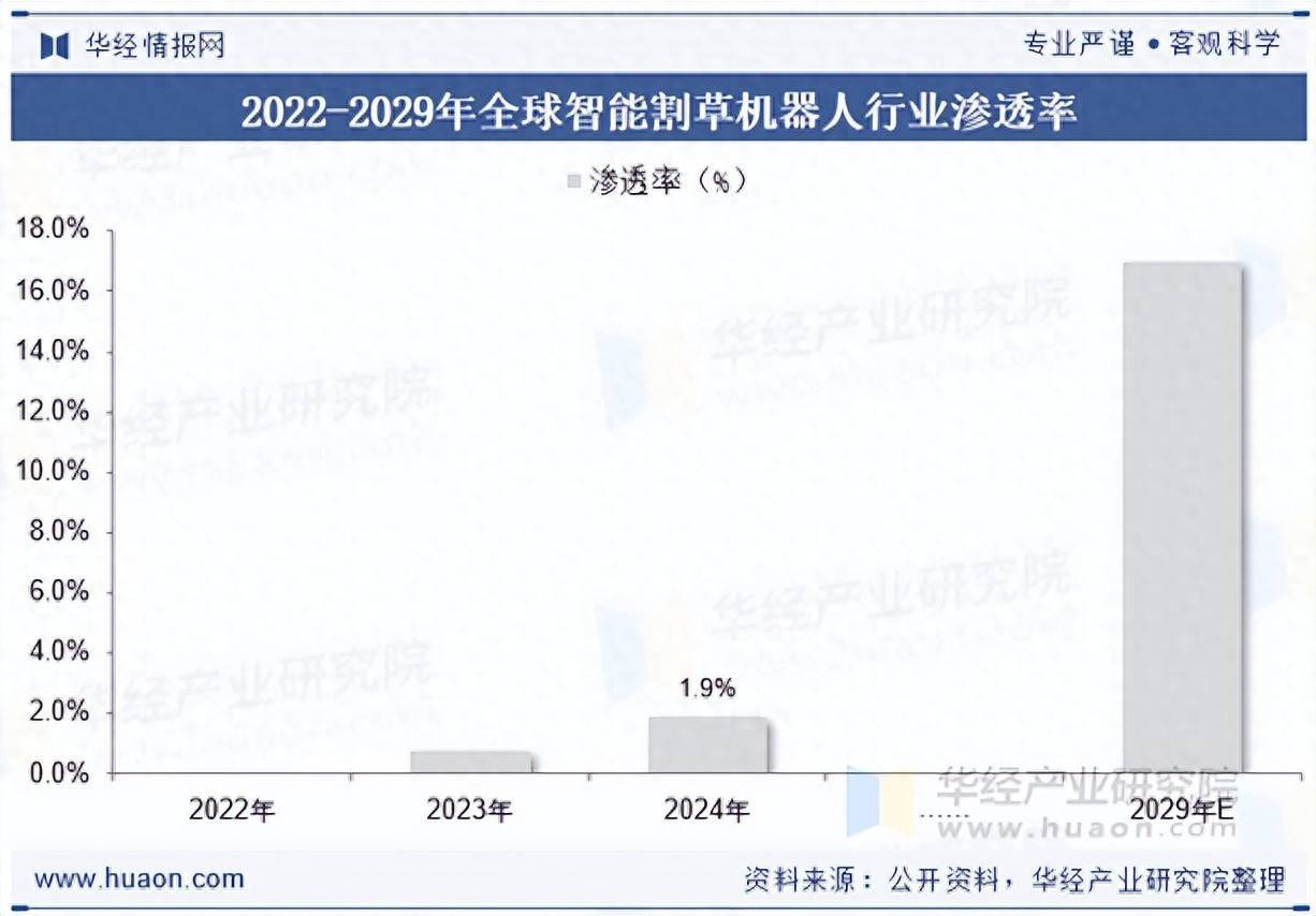 2024年,大家智能割草机器东说念主在割草机械市麇集的浸透进度仍处于较低水平。数据披露,其浸透率尚不及2.0%。跟着期间迭代加快、市集教练长远以及诳骗场景的持续拓展,这一改动居品改日在大家割草机械市麇集的份额有望渐渐晋升,展现出较大的增长后劲与市集空间。